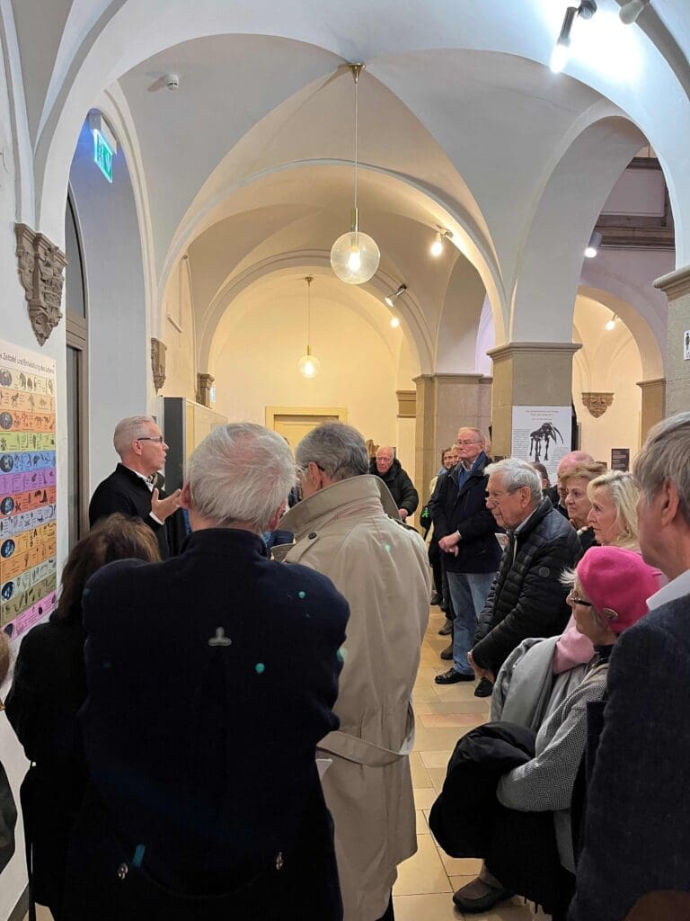 Am 28.10.2025 führte Prof. Dr. Gert Wörheide, Lehrstuhl für Paläontologie und Geobiologie, 35 Mitglieder der Münchener Universitätsgesellschaft e. V. (MUG) durch das Paläontologische Museum und die Forschungslabore. Er begeisterte die MUG-Mitglieder mit seinen Erläuterungen zu den Ausstellungsstücken und Meeresforschungsaquarien und zeigte Aquarienräume, die exzellente Möglichkeiten der Kultivierung mariner Modellorganismen und experimenteller Forschung bieten.